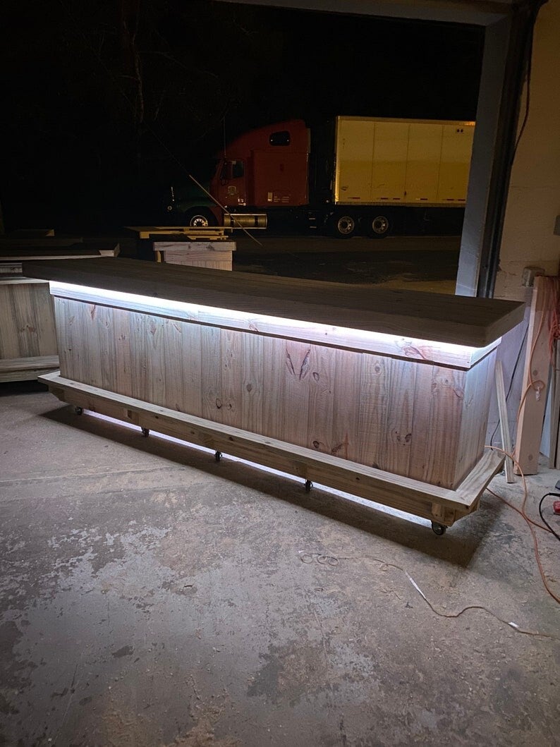 Stylish, portable, and built with care—this custom lighted bar transforms any space into a professional, eye-catching setup.